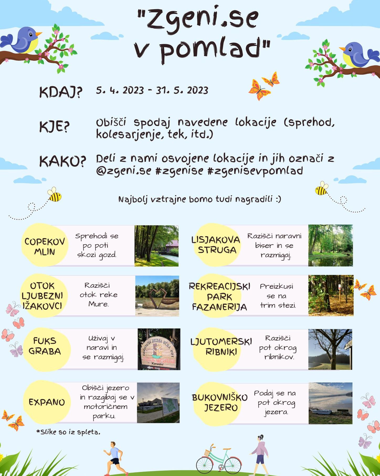 Telesna dejavnost, gibanje, je pomemben element zdravega življenjskega sloga in pomemben dejavnik v ohranjanju in krepitvi zdravja. Gibajmo se v naravi, ki pozitivno vpliva tako na fizično kot duševno zdravje, ter ohranjajmo naravno okolje.